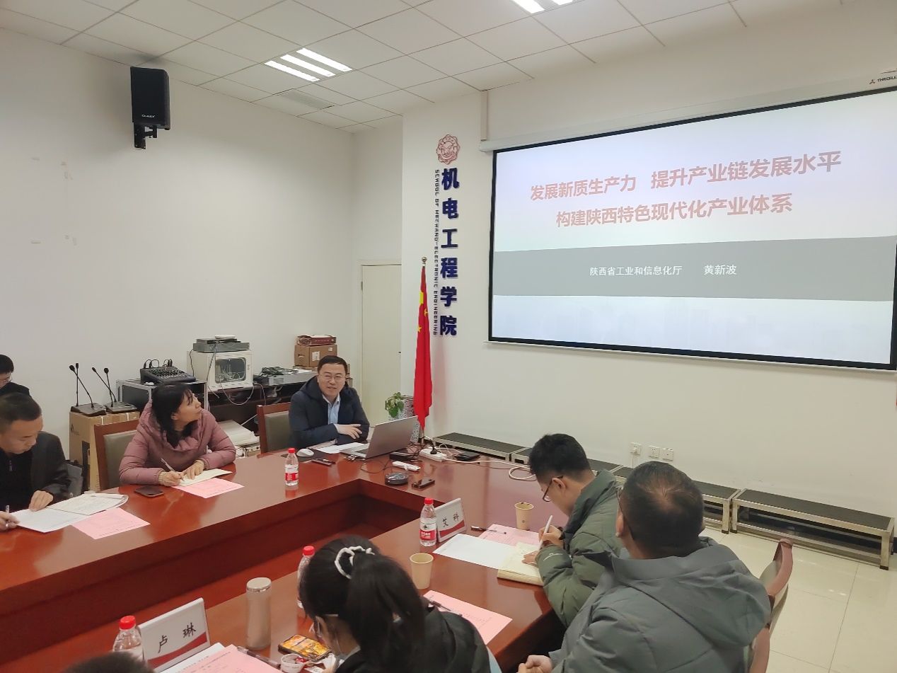 在北校区主楼三区145北会议室举办党的二十届三中全会精神宣讲报告会,邀请陕西省工业和信息化厅副厅长黄新波到会讲授。校党委常委、副校长王泉,西安匠为智能科技有限公司董事长张敏,木瓜视频
