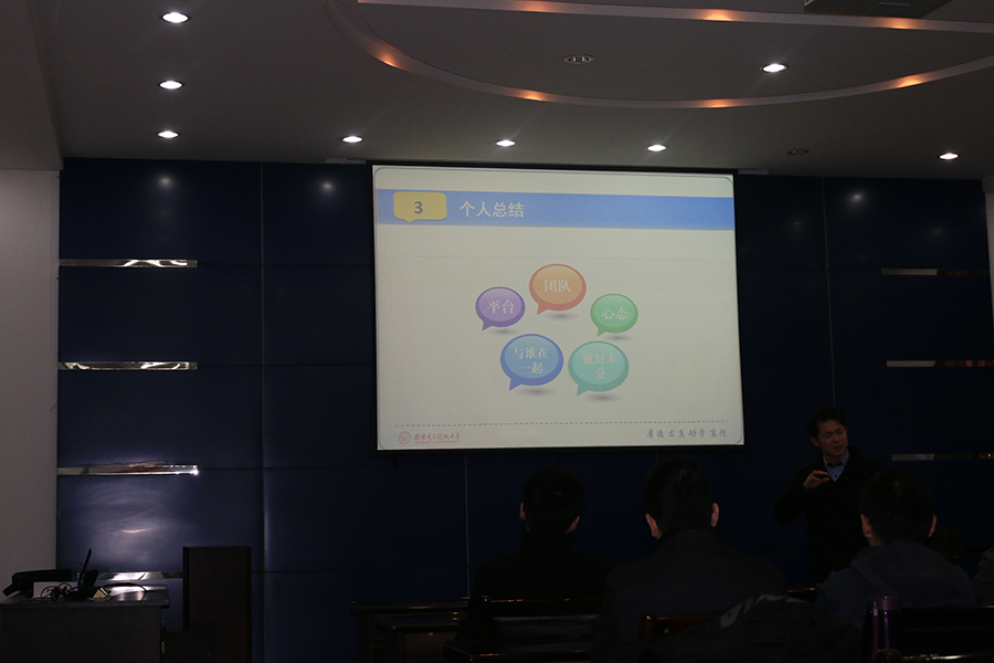交流会之始,主持人介绍了到场嘉宾在学习和就业方面的辉煌成果。随后,热烈的掌声迎来了众多嘉宾,五位研二嘉宾依次分享了他们获取奖学金、发表论文、参加竞赛的经验,除此之外,还提到如何协调学习和课外活动的关系,同时不乏“学习宝典”和“奖学金指南”穿插其间,交流过程乐趣横生。五位研三嘉宾紧随其后亦依次上场,张坤把个人总结的就业形势及面试经验倾情奉献,钟强细诉个人奋战历程,每一个脚步都向同学们传达着坚毅和专注。