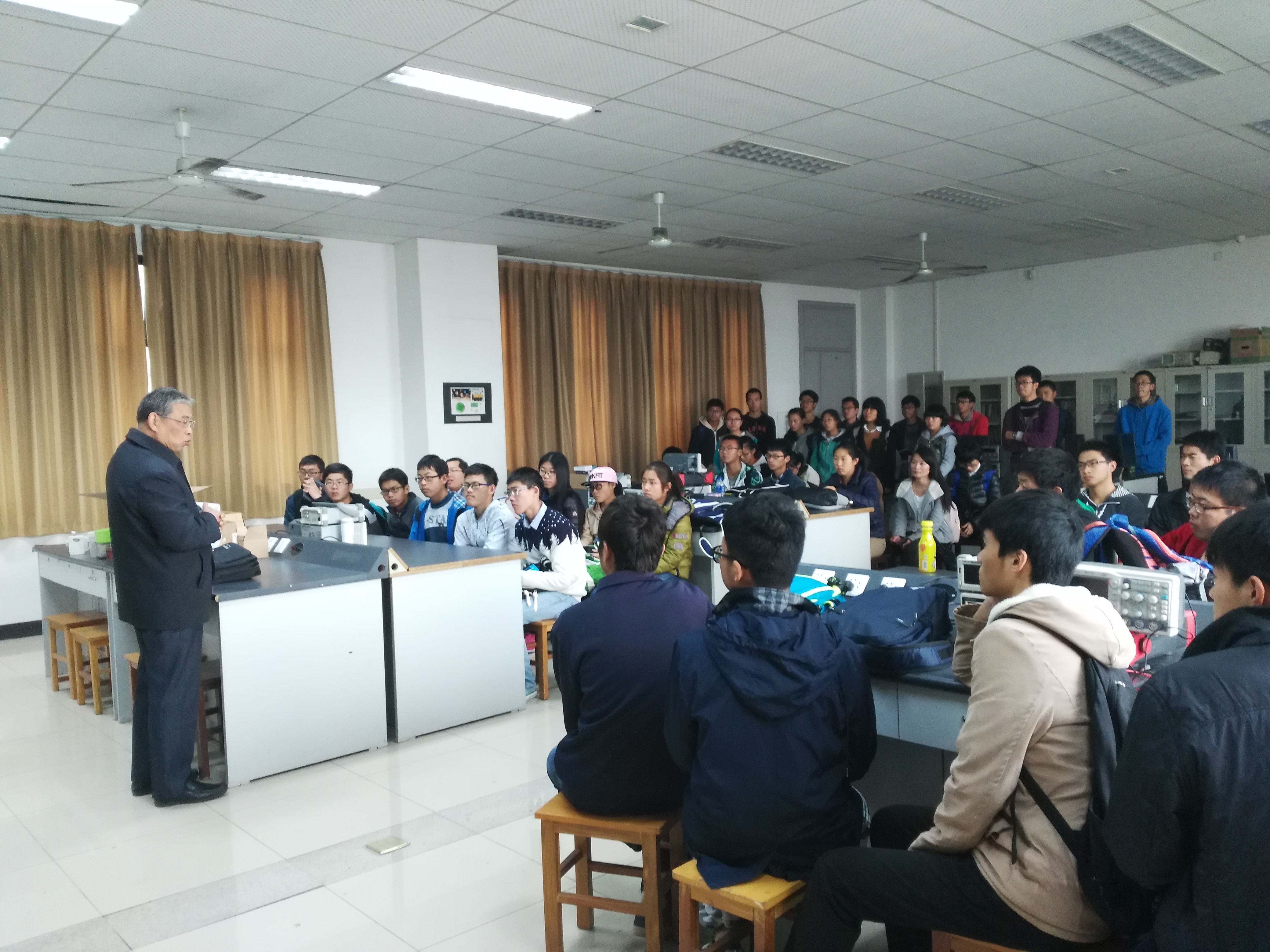 赵建教授首先代表木瓜视频和测控工程与仪器系全体老师对“测控技术与仪器专业大学生科技实践团队”的成立表示热烈的祝贺,对积极参加科技实践团队的同学给予了充分的肯定和支持。并回顾了测控技术与仪器专业开展大学生科技实践活动的历史和取得的突出成绩,介绍了测控技术与仪器专业在学生科技实践活动中以老带新的传统和具体做法,分析了测控技术仪器专业的学科特点和人才培养优势,希望科技实践团队向着规范化方向发展,形成完善的管理制度和人员培养计划,使这支全木瓜视频乃至全学校第一个由本科四个年级学生共同组建的科技实践团队能越办越好,能够吸引更多的同学参加,形成良好的循环。要求大家努力钻研、勤学苦练、团结合作、充分发挥团队作用,在科技实践活动中不断提高自身的综合素质和实践能力,勇于创新,敢于实践,在大学生科技实践活动中取得丰硕的成果。为了表示对科技实践团队的支持,赵建教授代表测控工程与仪器系向科技实践团队赠送了自行研制开发的20套MSP430单片机实验系统,并表示今后还会陆续赠送多种不同类型嵌入式系统实验设备,使同学们能够受到更加全面的训练,掌握更先进的嵌入式系统应用技术。赵建老师的发言引起了同学们共鸣和反响,会议气氛热烈活跃。成立仪式结束后,不少同学还留下来就感兴趣的问题与赵老师进行了交流和咨询。