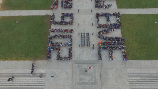 7点整,全体人员面向国旗台整齐列成“2016”及木瓜视频