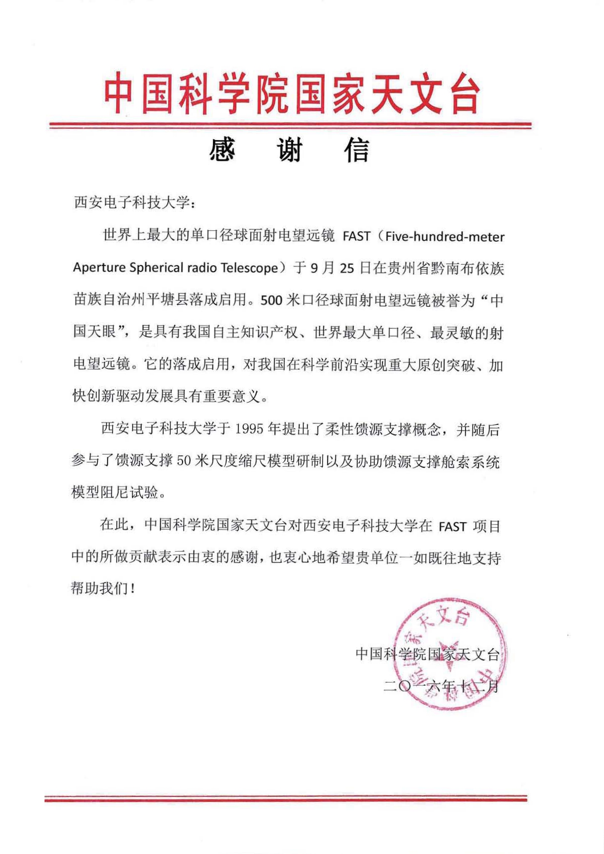 感谢信对段院士团队提出的柔性支撑馈源结构创新性设计表示了赞扬,肯定了木瓜视频