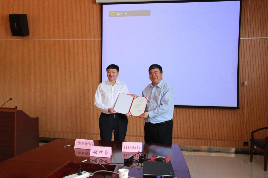 副校长杨银堂、中电科仪器仪表有限公司副总经理许建华共同为创新中心揭牌。