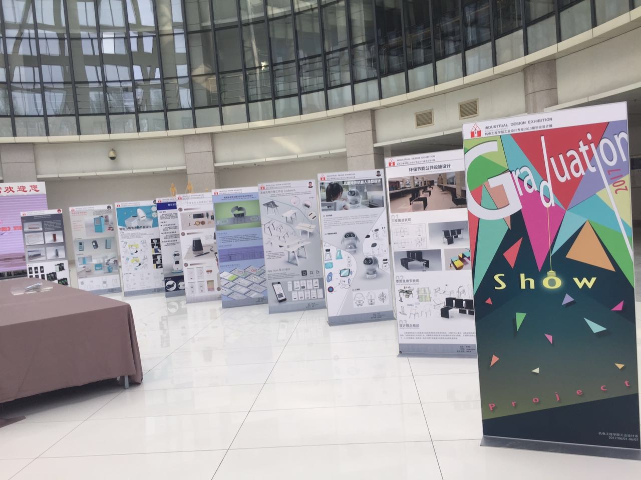 工业设计专业2013级本科毕业设计作品展于2017年6月1日~6月7日在我校南校区图书馆B区圆厅举办,之后于6月8日~6月21日在北校区主楼3区西侧一楼走廊进行展览。本次毕业设计作品展览涉及家电类、办公装备类、老人护理类、儿童玩具类、特色文化创意类、UI类等设计,涵盖了本专业的研究方向。