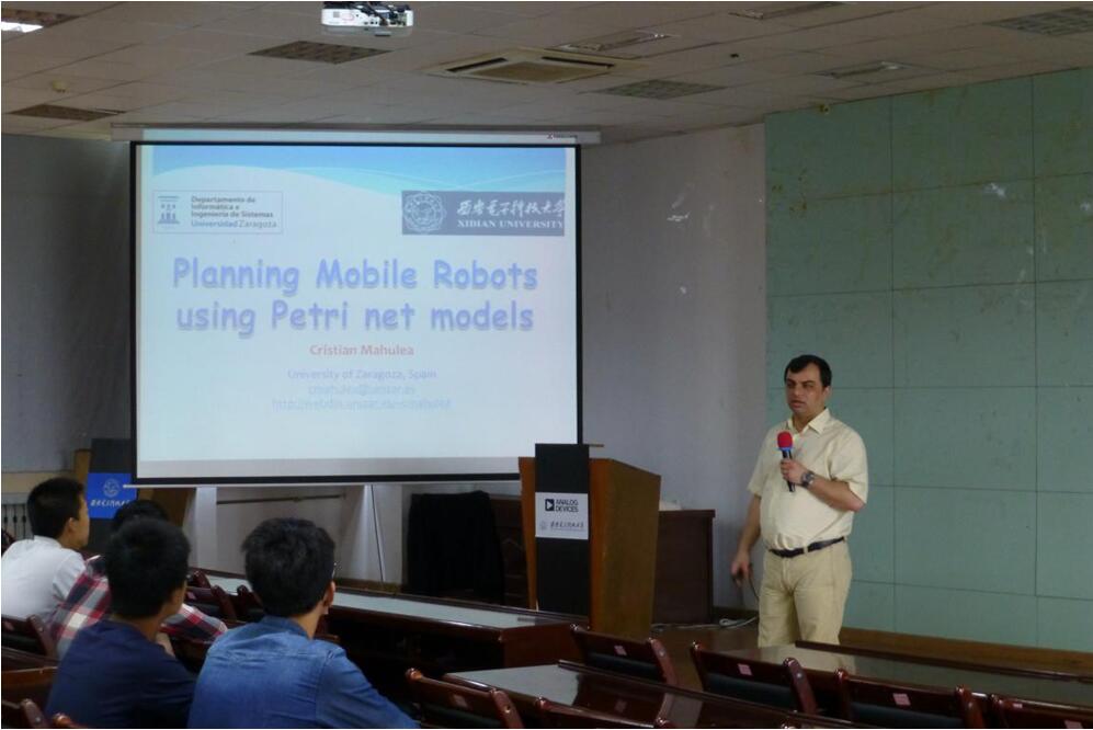复杂系统国际联合研究中心李志武教授邀请,2016年5月28日-6月3日西班牙萨拉戈萨大学Cristian Mahulea教授到访我校。他分别于6月2日上午在北校区阶梯教室J-208教室和6月3日上午10:30在南校区大学生活动中心511报告厅,分别作了《A model-based approach for the specification and verification of clinical guidelines》和《Planning Mobile Robots using Petri net models》学术报告。