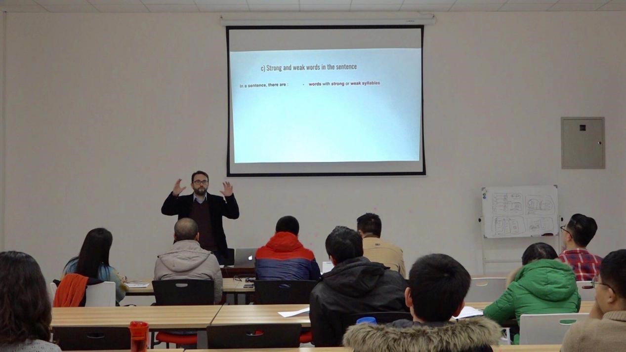 1月2日到1月4日,Macnamara教授针对中国学生容易出现的英语发音不标准问题,讲授了8小时的英语口语纠正课程。课堂上,Macnamara教授与学员积极互动,通过面对面地交流,指出学员的发音问题,并进行纠正练习。