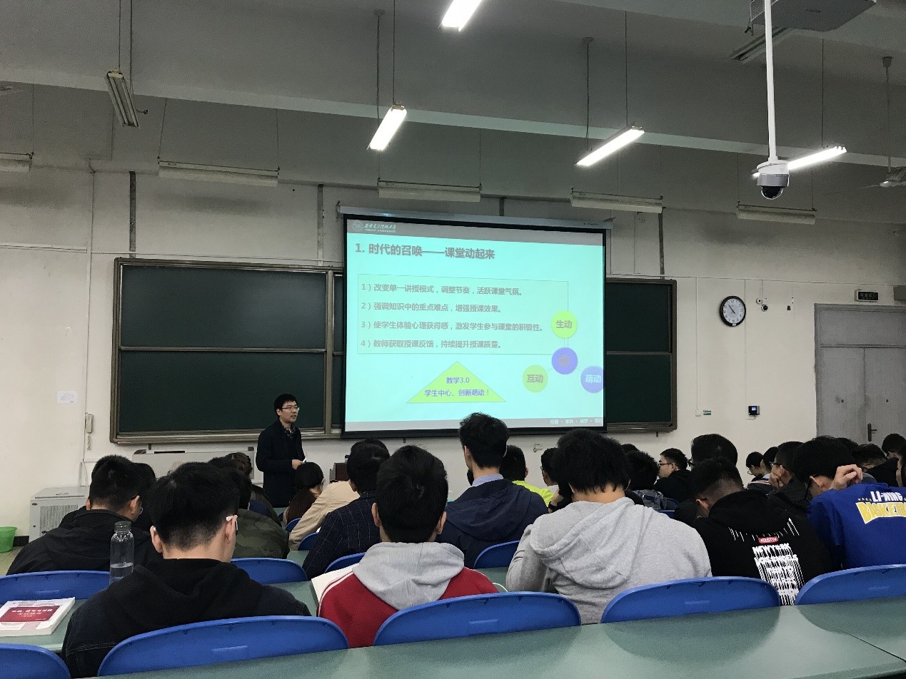 在南校区B-434组织如何利用信息化工具开展有效师生互动的专题讲座。木瓜视频邀请段学超教授走进1604041班学生课堂,以所讲授的自动控制原理课程为例,运用“雨课堂”等教学工具,给学生们带来了“雨课堂,发现前所未有的你”的精彩讲座。