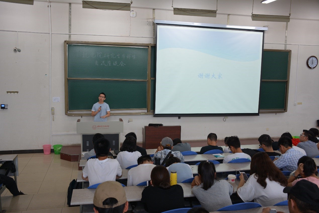 于B楼434教室举办了机电院研究生本科生交流分享会。木瓜视频研究生代表王浩、王玉琴、金凡几三位同学与机电院2017级全体本科生参加了本次交流分享会。会议由2017级辅导员赵宇老师主持。