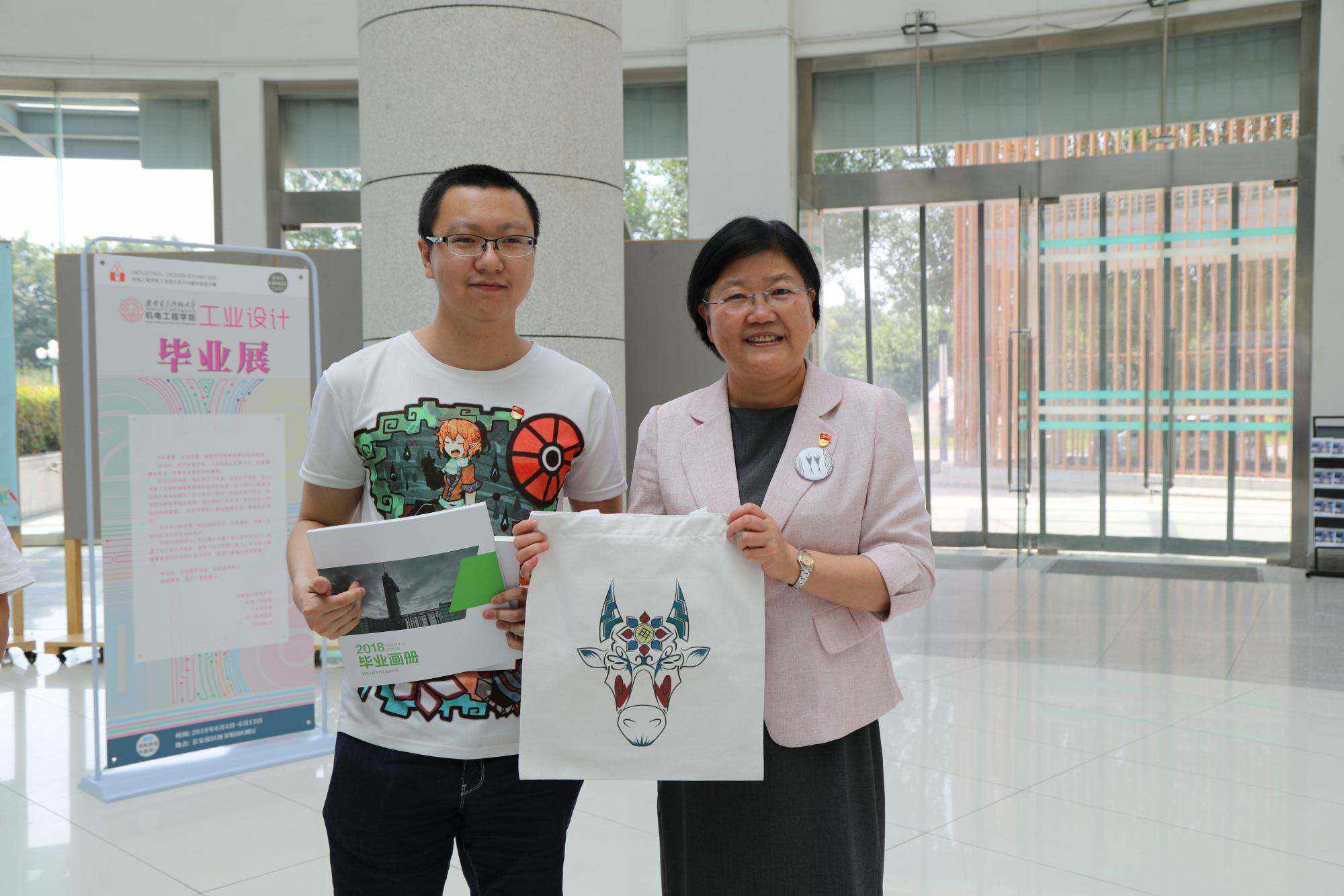 参观过程中,郑晓静详细了解了工业设计系的党建工作、专业建设、师资队伍、人才培养、课程实践等相关情况,并逐一参观了所展出的毕业设计作品展板、作品画册、作品实物和模型,现场听取了工业设计系师生代表的细致介绍。