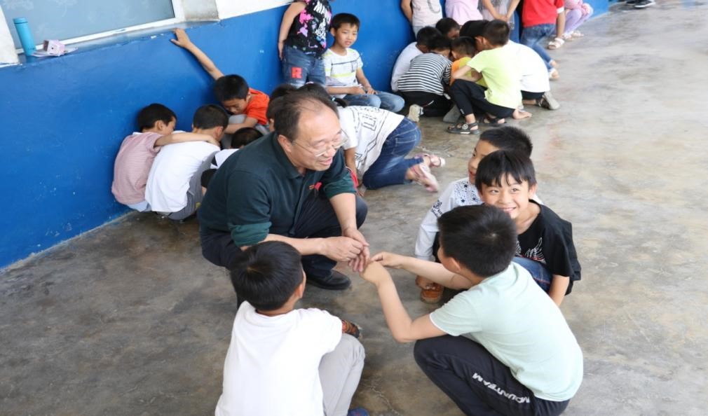 党委书记梁玮和小学生们正在进行愉快的互动,现场气氛十分活跃!