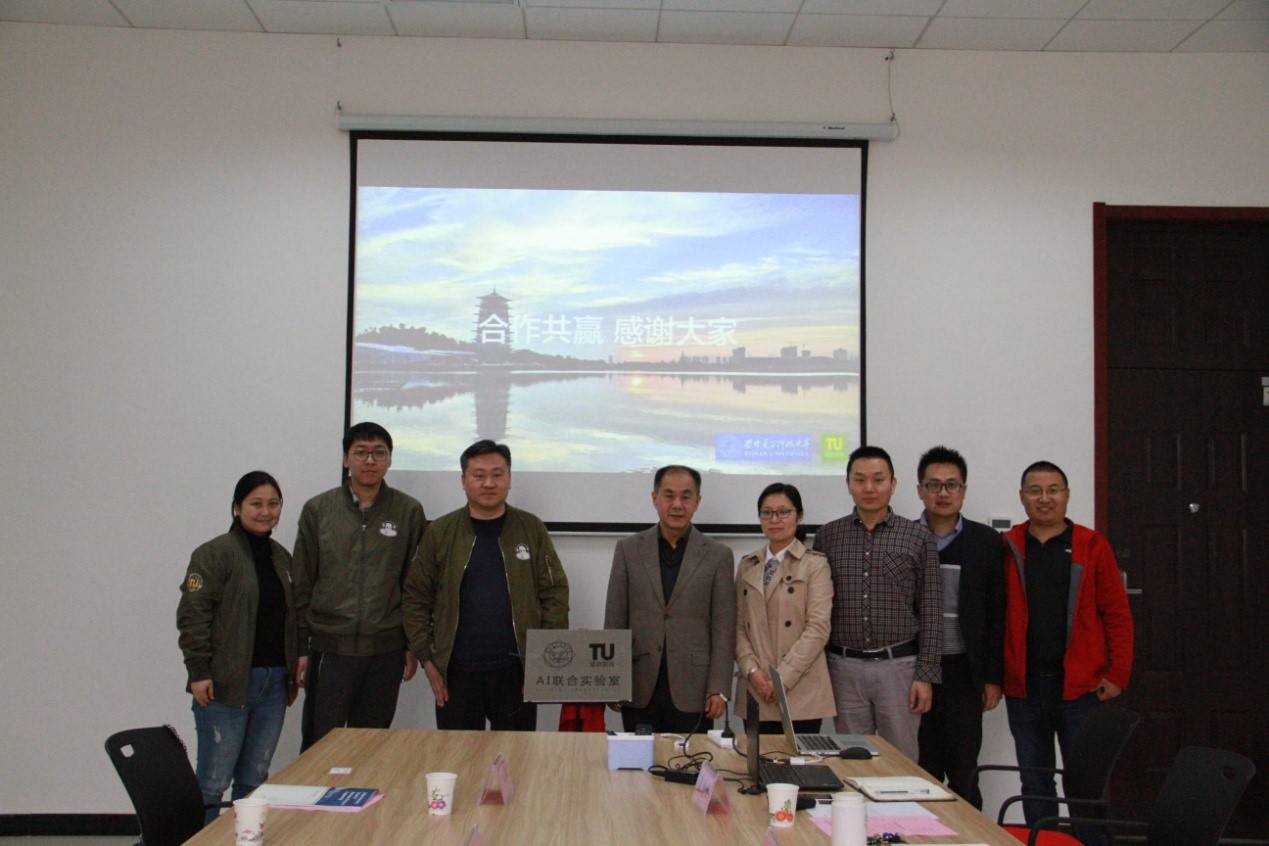 与在线途游(北京)科技有限公司共建“西电—途游 AI联合实验室”揭牌仪式在北校区主楼三区第二会议室成功举行。在线途游(北京)科技有限公司创始人兼CTO周欣、人力资源总监方媛媛、BI系统技术总监安晓宇、人力资源部王婷婷,木瓜视频