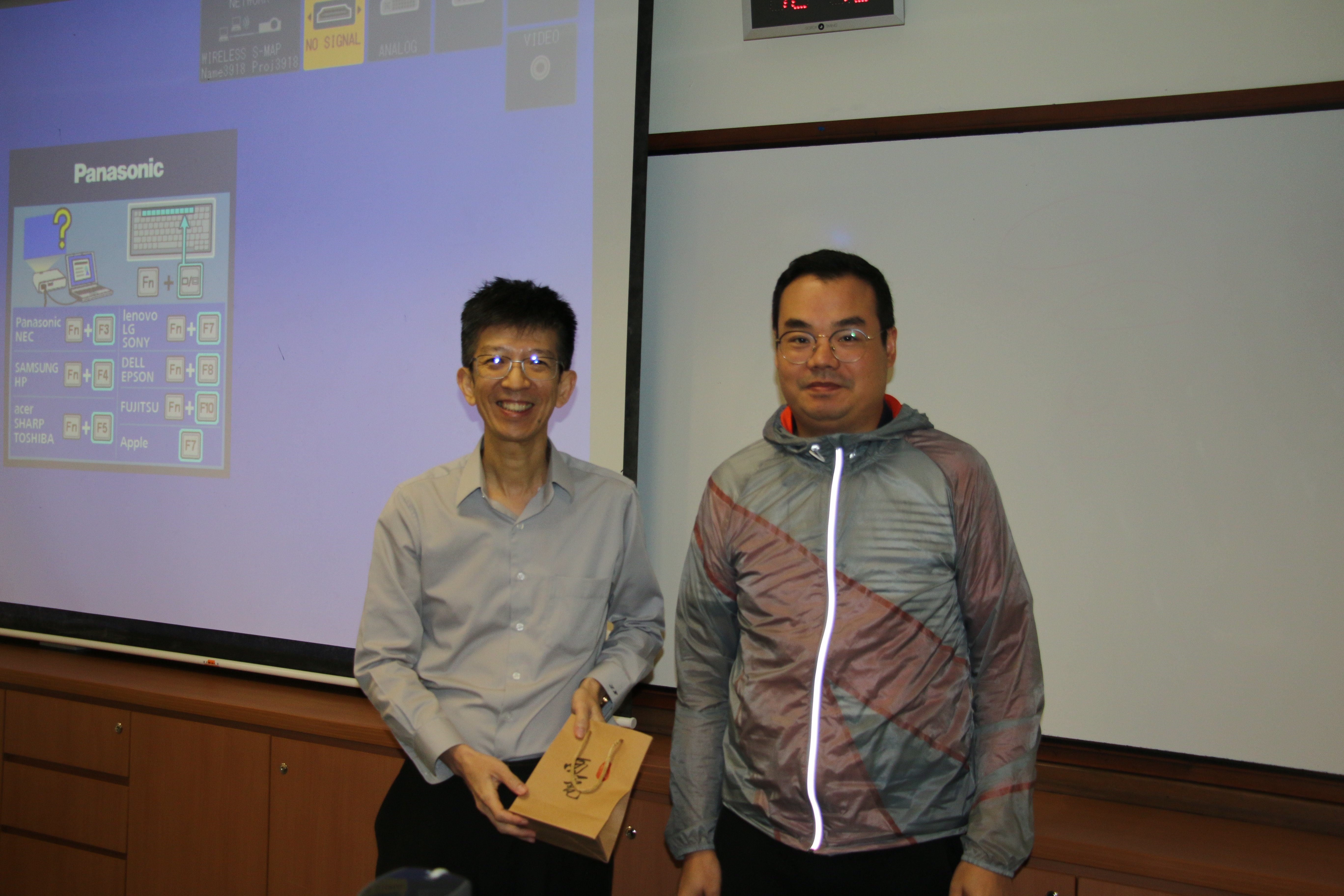 王飞老师向NUS张老师和李海洲教授赠送西电定制礼物,双方合影留念。随后,李海洲教授以人工智能的相关背景与发展以及语音处理的相关技术为题目,为同学们做了一场精彩的报告。