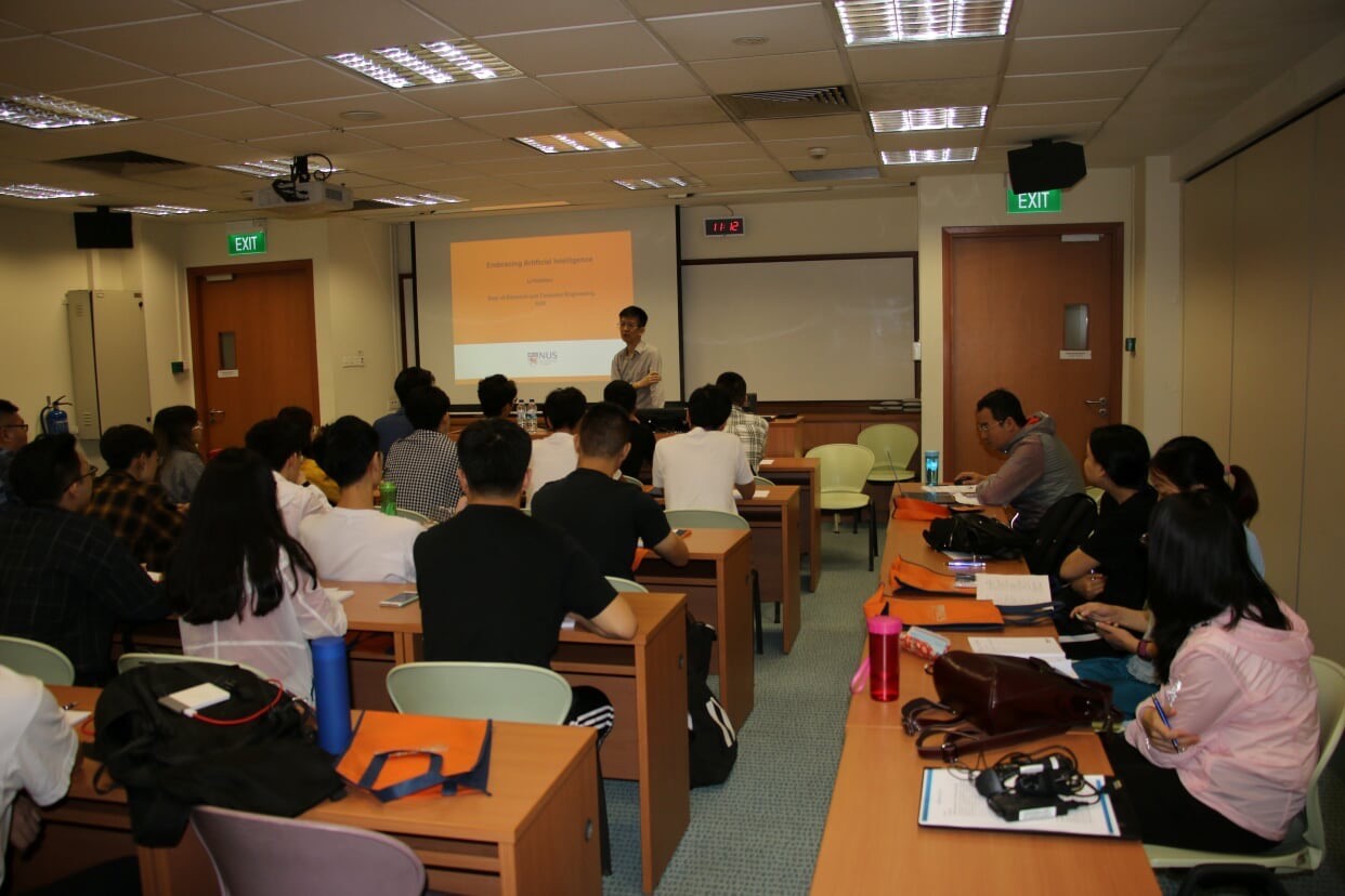 下午,同学们来到了新加坡科技研究局(Agency for Science, Technology and Research, A*STAR),新加坡科技研究局资讯通信研究院高级科学家Dong Minghui博士先向同学们介绍了A*STAR的各个部门,包括BMRC、JCO、SERC和ETPL以及SERC等的研究方向。董博士用风趣的语言,深入浅出地介绍了智能语音交互技术、机器翻译技术、自动对话技术和自动会议语音识别与摘要技术及其发展现状与实际应用。董博士团队的孙研究员用团队研发的声纹识别软件,向同学们进行语言技术的演示;以Employee Analytics为例,演示了团队大数据分析的成果,同学们也对机器学习和深度学习有了初步的概念,产生了极大的兴趣。