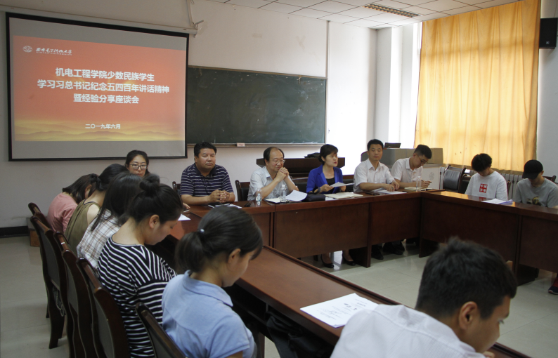 少数民族学生学习习近平总书记五四百年讲话精神暨经验分享会在南校区信远楼II-106召开,机电院全体维族藏族和其它民族代表学生共30余人参加了座谈会。学校党委统战部部长吴秀霞、新疆内派教师卡吾力·斯地克、木瓜视频党委书记梁玮、木瓜视频各年级辅导员参加了座谈会。会议由木瓜视频党委副书记田雨主持。