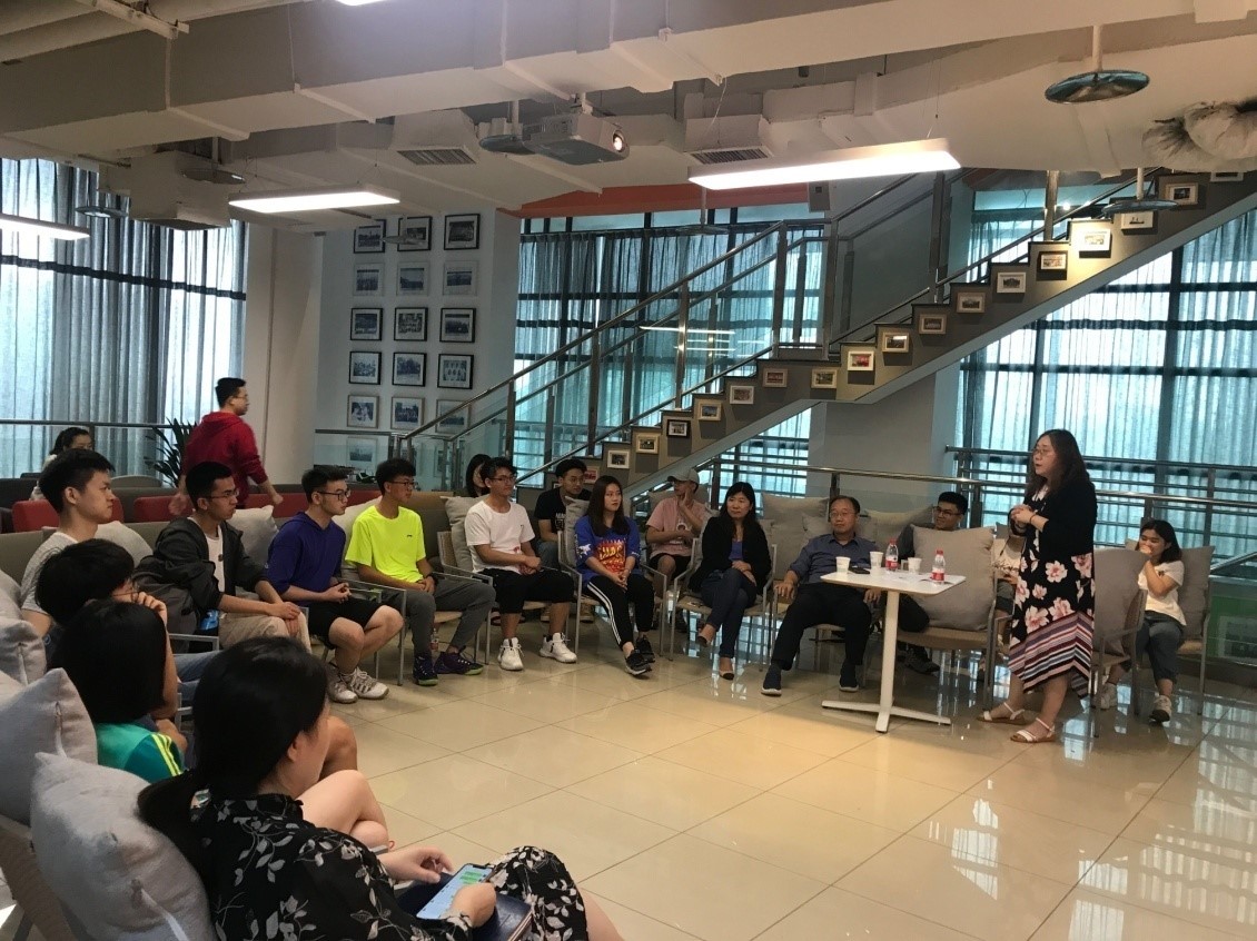 互动环节里,王建群学姐有问必答,与同学们一起就国内外教育差别、中美贸易战背景下对留学的影响、大学生创新创业以及国际化交流等问题进行了深入探讨,分享会氛围轻松自由,各抒己见,将本次分享会推向高潮。