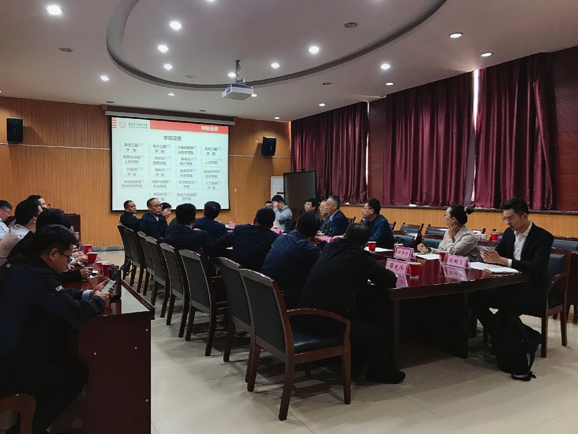 座谈会上,王泉首先代表学校对温州市委组织部一行来校调研表示热烈的欢迎,并且从学校历史沿革、学科优势、人才队伍、科学研究等方面向与会人员介绍了学校的基本情况。马永良对西电接待本次调研的表示诚挚的感谢,并对温州市风土人情、治理现状、产业优势等方面进行了介绍,他强调,温州市对人才引入高度重视,制定了一系列政策方针,为企业、人才发展搭建平台,创造空间,并且希望与西电在产学研方面建立联系,推动合作落地生根。随后,钱强对温州大学人才培养、学科建设、科学研究等方面进行了介绍,蔡军令对龙湾区高新技术产业园区建设发展、政策方针等进行了介绍。