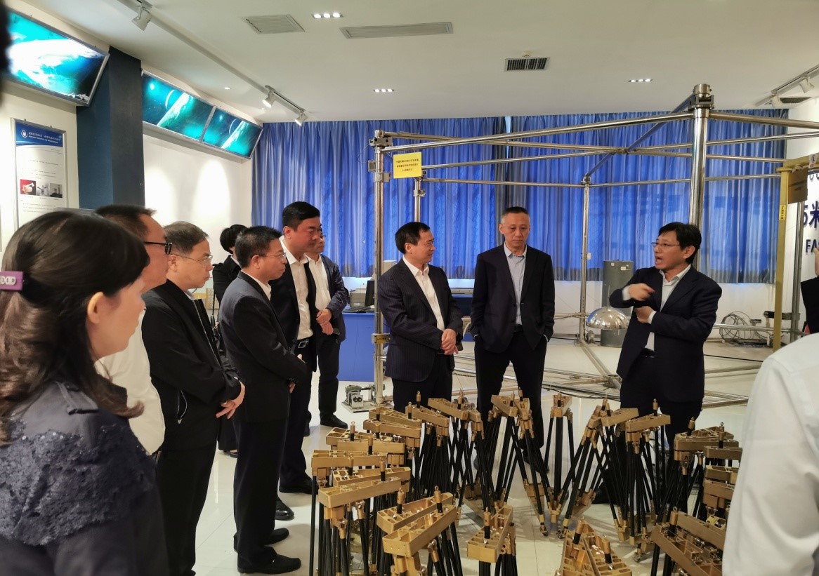 执行院长黄进为参观者讲解了室内、全链路全系统空间太阳能电站演示验证系统,中国天眼500米口径反射面高精度动态定位技术及5米缩比样机,以及大口径宽带侦察用空间可展开天线及2米口径缩比样机,星载高精度静电成形薄膜天线及0.5米、2米样机。