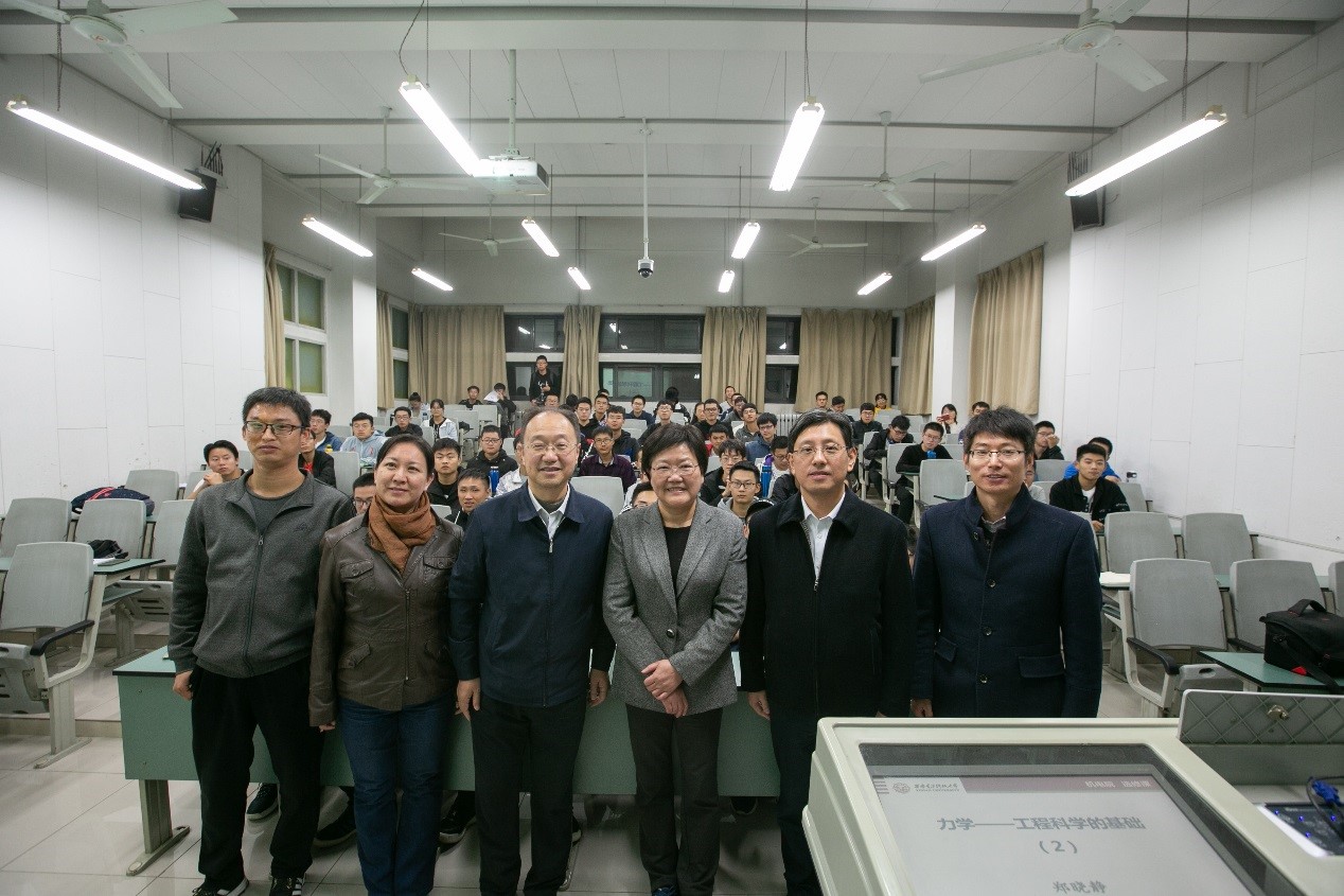 的本科生开设了通识课程《力学通识及前沿概论》。该课程面向我校大一和大二的学生,旨在为本科同学普及力学作为一门科学的基础性、应用性、前沿性以及与其他学科的交叉性等,培养并提高本科生的力学素养,从多角度、多侧面引领学生认识并了解力学学科,激发学生独立思考并将其他学科与力学进行融会贯通的能力。该课程开设后,受到同学们的热烈欢迎,选课人数达到课容量上限,自9月18日开课以来的一个月,每周三、周四的晚上,A楼225教室内座无虚席,郑院士与高伟教授深入浅出地从多方面讲授力学是“大工业的真正科学的基础”,为同学们带来了一场力学的盛宴。