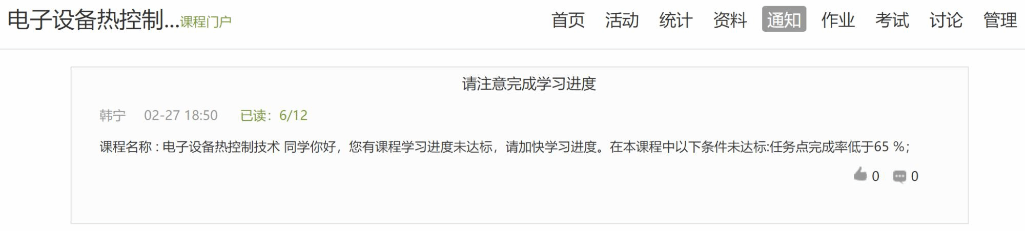 上传“预学单”,自主学习:在学习平台上对每次授课内容设置相应的学习任务点。课后统计任务点完成情况,对不按时完成任务点的学生提出预警。预警截图如下所示: