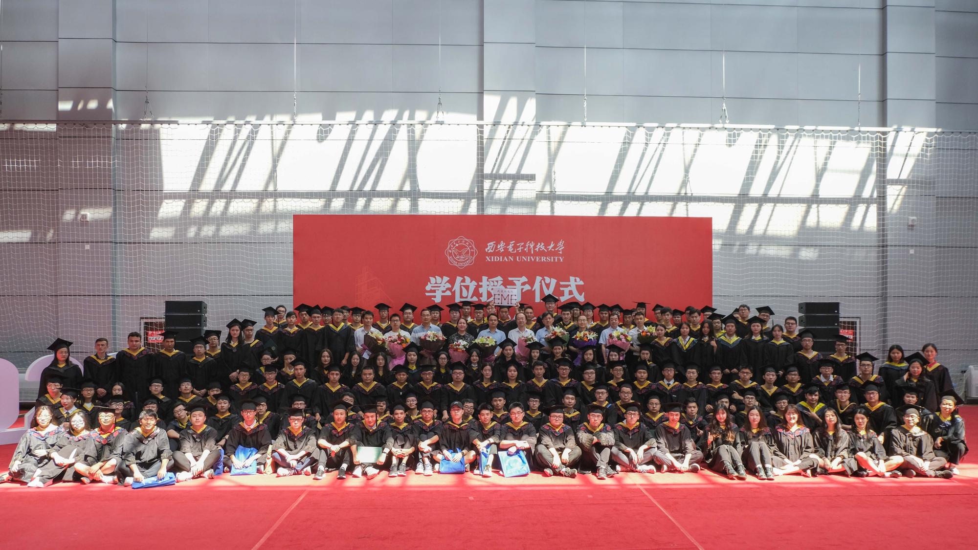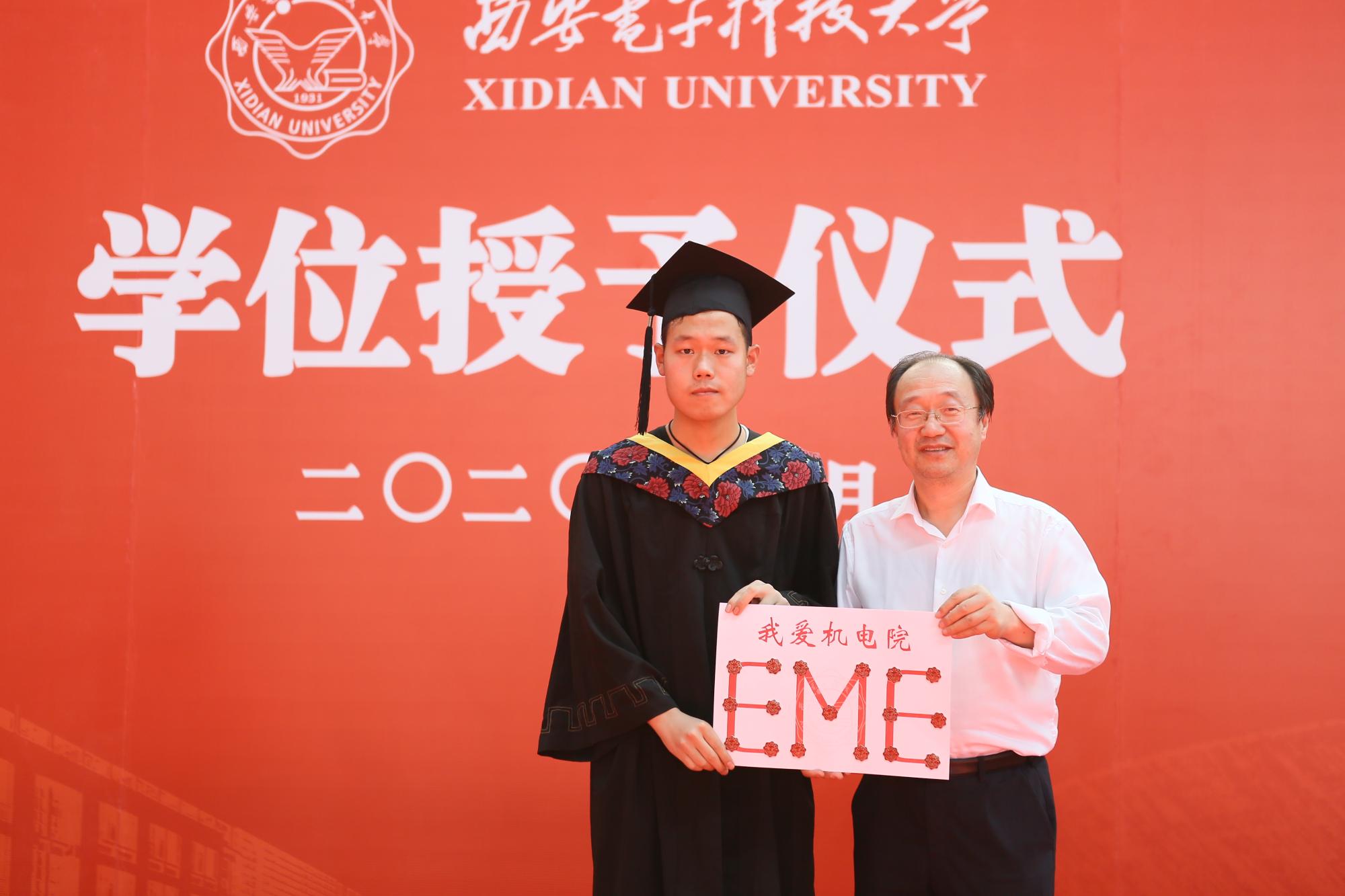 根据上午2020级本科毕业生座谈会李智强同学提出的想留一枚代表学校的校徽,来纪念自己在西电的四年学习生涯,木瓜视频决定为大家每人准备一个校徽纪念品,同时对于同学们想常回母校表示热烈欢迎,并鼓励同学自己设计毕业纪念品。授位仪式上梁玮代表木瓜视频,将李智强同学设计的带有机电院英文简写EME和“我爱机电院”的校徽赠于学生代表,希望同学们以后有机会常回家看看。