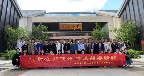 下午,一行人前往了中央军委无线电通讯学校——西电前身延安通校的所在地,切身体会到西电“长征路上办学,半部电台起家”的艰辛历程,深刻理解了“艰苦奋斗、自强不息、求真务实、爱国为民”的西电精神实质。参观过程中,在场师生接受了现场教学,回顾了当时在党中央毛主席的带领下,革命先烈们在延安的艰苦创业故事。随后,在场学生共同朗诵了柯仲平创作的《延安与中国青年》,本着“全心全意为人民服务”的初心,传承通校精神,立志科技报国,下定决心将西电的红色基因永远传承下去。