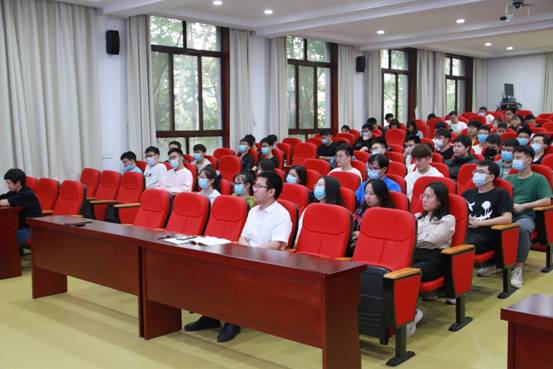 研究生辅导员周蕾主持,木瓜视频党委副书记陈武、木瓜视频副院长段学超分别做了报告。