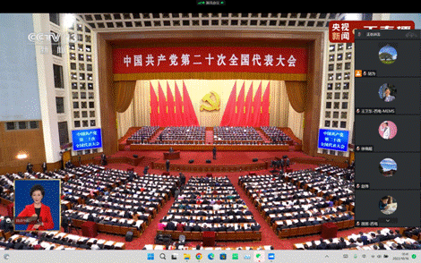 大会对全面建成社会主义现代化强国两步走战略安排进行了宏观展望,科学谋划了未来5年乃至更长时期党和国家事业发展的目标任务和大政方针,审视了当今世界和当代中国发展大势,从战略全局上对党和国家事业作出了规划和部署,指引全党全军全国各族人民坚定历史自信、增强历史主动,奋力开创中国特色社会主义新局面,坚定不移推进中华民族伟大复兴历史进程。收看直播过程中,师生们一起起立,共唱国歌;一同默哀,追思中国共产党老一辈无产阶级革命家,认真听取了习近平总书记《高举中国特色社会主义伟大旗帜,全面贯彻习近平新时代中国特色社会主义思想,弘扬伟大建党精神,自信自强、守正创新,踔厉奋发、勇毅前行,为全面建设社会主义现代化国家、全面推进中华民族伟大复兴而团结奋斗》的主题报告,并在开幕会结束后开展了热烈的学习和讨论。