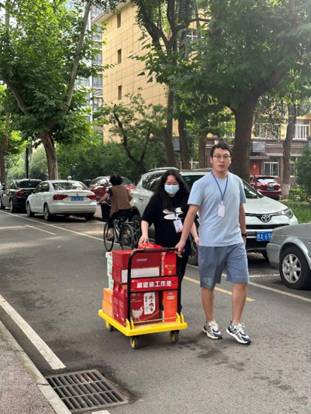 志愿者们分成小组,在领取到福利名单和慰问品后,立即和对应老教师进行电话沟通,确认地址,确保将每一份慰问品按时送达。经过一早上的努力,志愿者们将所有的慰问品送至老教师家中,同时也将学校对离退休教职工的关爱圆满送达。