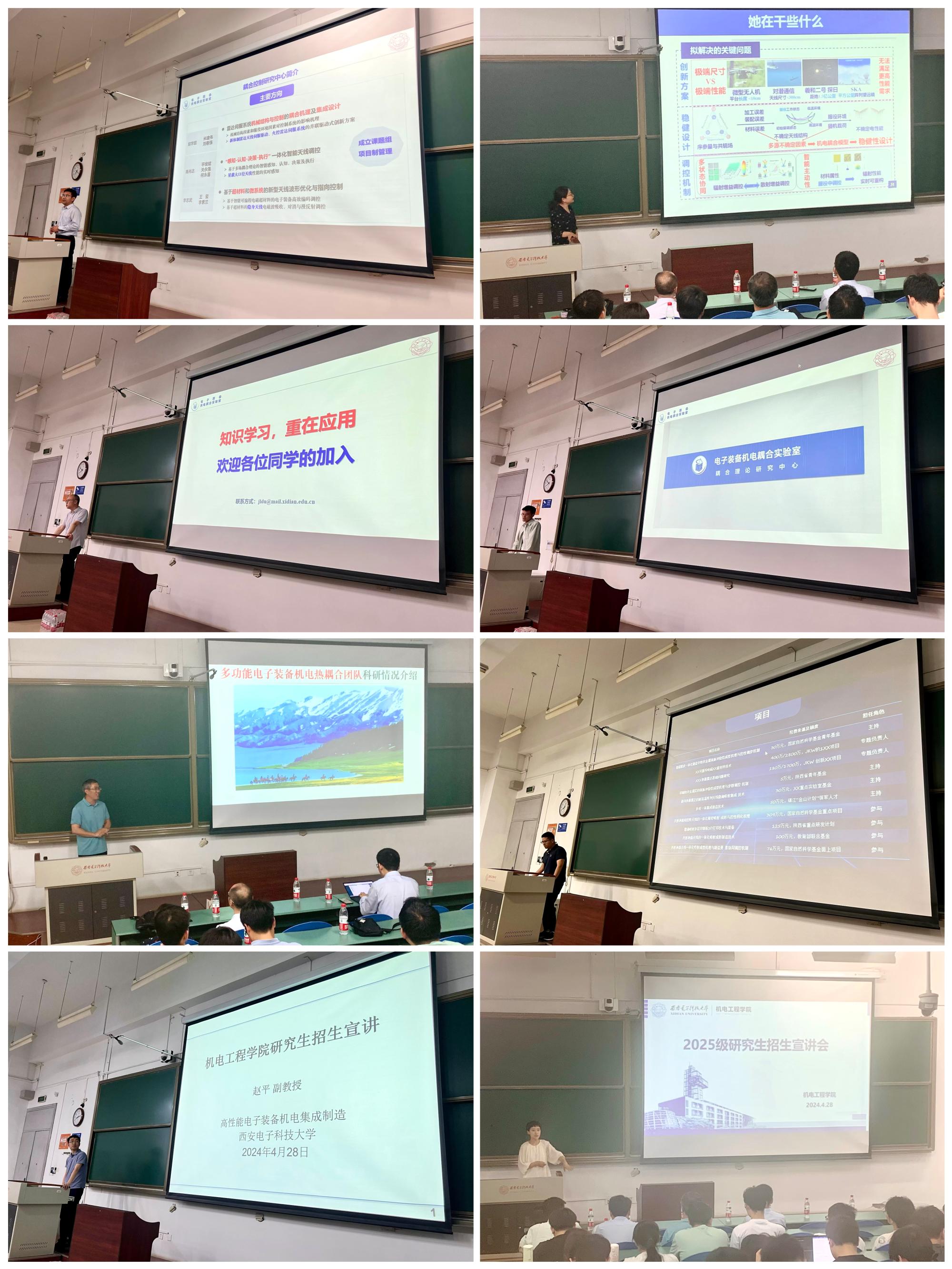 会议伊始,木瓜视频向同学们介绍了木瓜视频2024年考研录取情况,分析了近年的考研情况及形势,鼓励同学们早布局、早谋划、早打算、早准备。随后,木瓜视频电子装备机电耦合实验室、高性能电子装备机电集成制造全国重点实验室的7位导师代表向同学们详细介绍了团队成员组成、研究方向、科研成果等基本情况,对研究生阶段工作、团队文化、毕业去向等同学们普遍关注的问题做了重点讲解,希望学生对木瓜视频研究生教育培养有更加深入的了解,对木瓜视频的整体架构及各导师的研究内容有了更加清晰的认知。