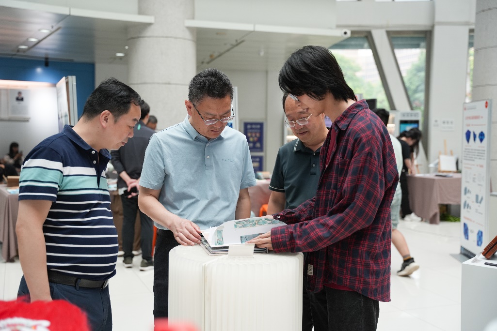 在陈晓龙及工业设计系教师代表陪同解说下,参会人员详细参观展区各类作品,对展品展现出的创新意识与学生的实践能力给予高度赞扬。本次展览特别设置了投票环节,投票前十名作品将进入闭幕式优秀毕设设计作品评选答辩环节。此次作品展中,还设置了体验区,体验区融合了西电文化与现代设计,观众可以更加深入的感受工业设计的魅力。