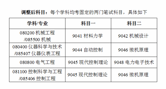 各位考生:为适应学科发展及研究生人才选拔需求,加强公平公正,我院拟对2026年硕士研究生招生考试复试笔试科目进行调整。具体如下 :原科目:(九选二)9041 材料力学;9042 机械设计;9043 机械制造基础;9044 自动控制;9045 现代控制理论;9046 微机原理;9047 传感器原理;9048 电力电子技术;9049 模拟电子技术基础最终以我校2026年硕士研究生招生简章及专业目录为准。特此通知,欢迎广大考生积极报考! 机电工程木瓜视频 2025年7月3日