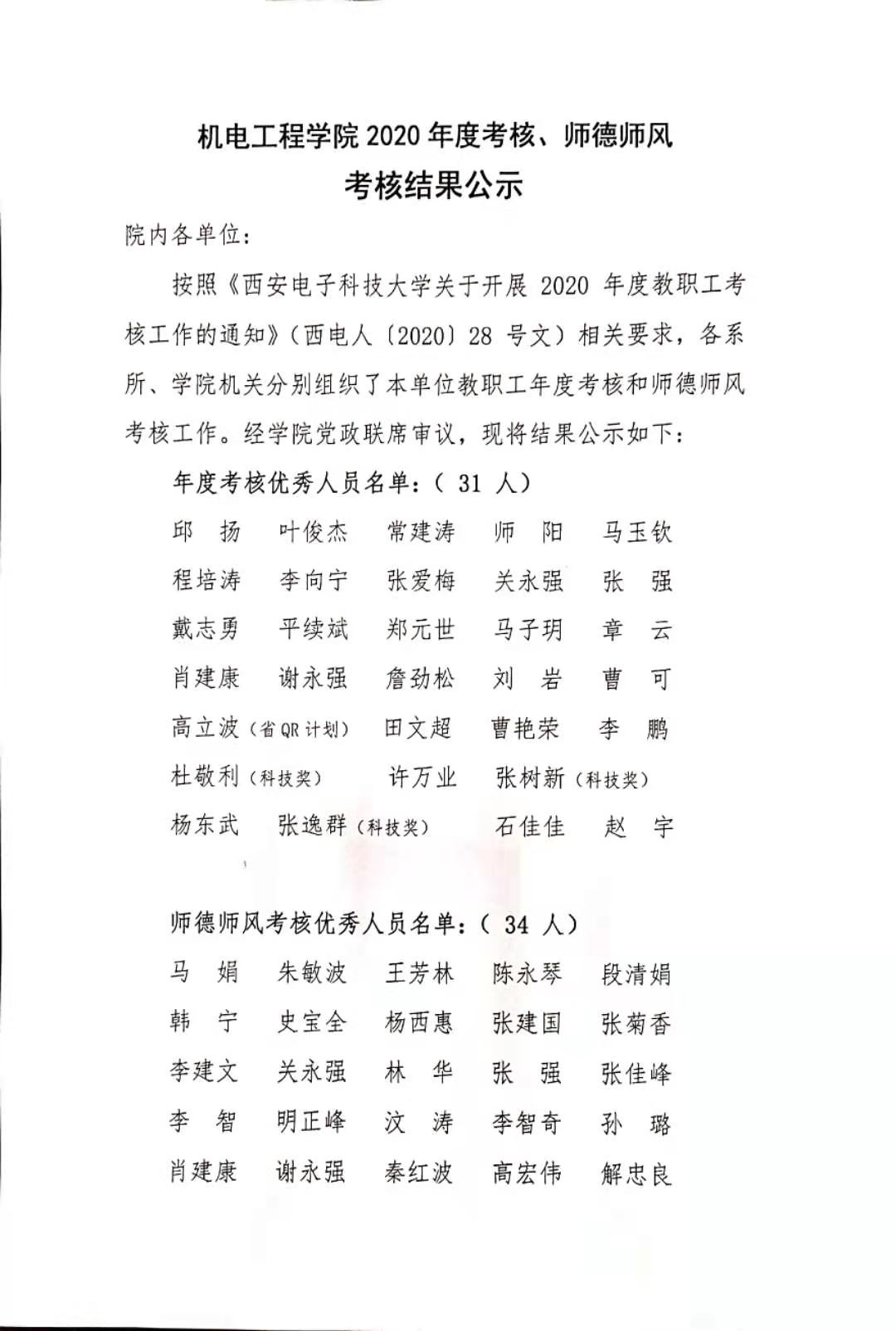 木瓜视频 2020年度考核、师德师风考核结果公示