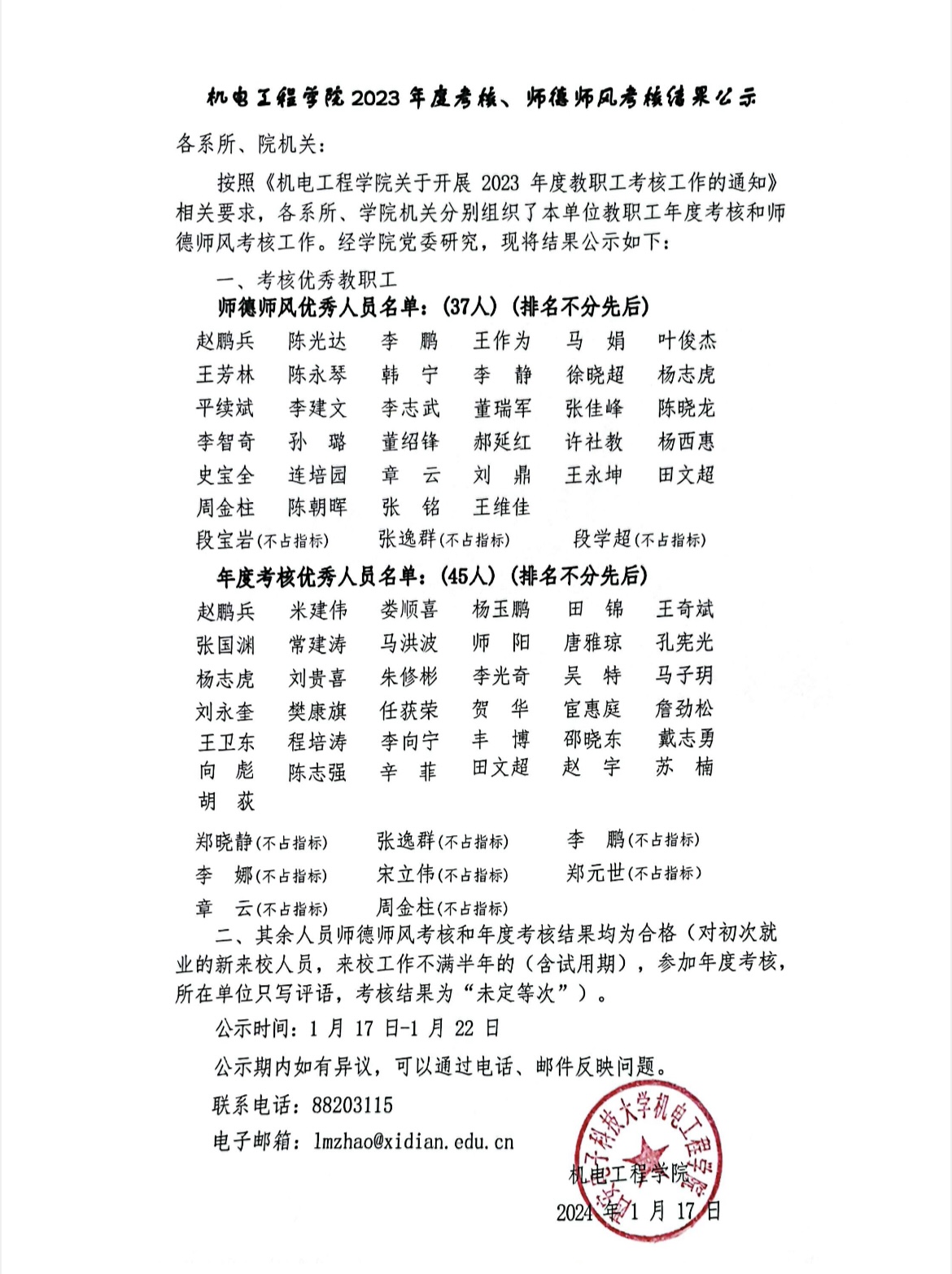 木瓜视频 2023年度考核、师德师风考核结果公示(公示期已过)