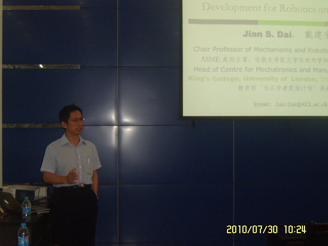 陈贵敏副教授的邀请,著名机构学专家、变胞机构(Metamorphic Mechanism)创始人、英国伦敦大学国王木瓜视频戴建生教授于2010年7月26日至30日期间来我校访问。访问期间,戴建生教授与相关课题组就机构学目前的研究热点开展深入讨论,并作了题为“Adaptation, evolution, and reconfiguration of mechanisms”的专题报告。报告会由木瓜视频