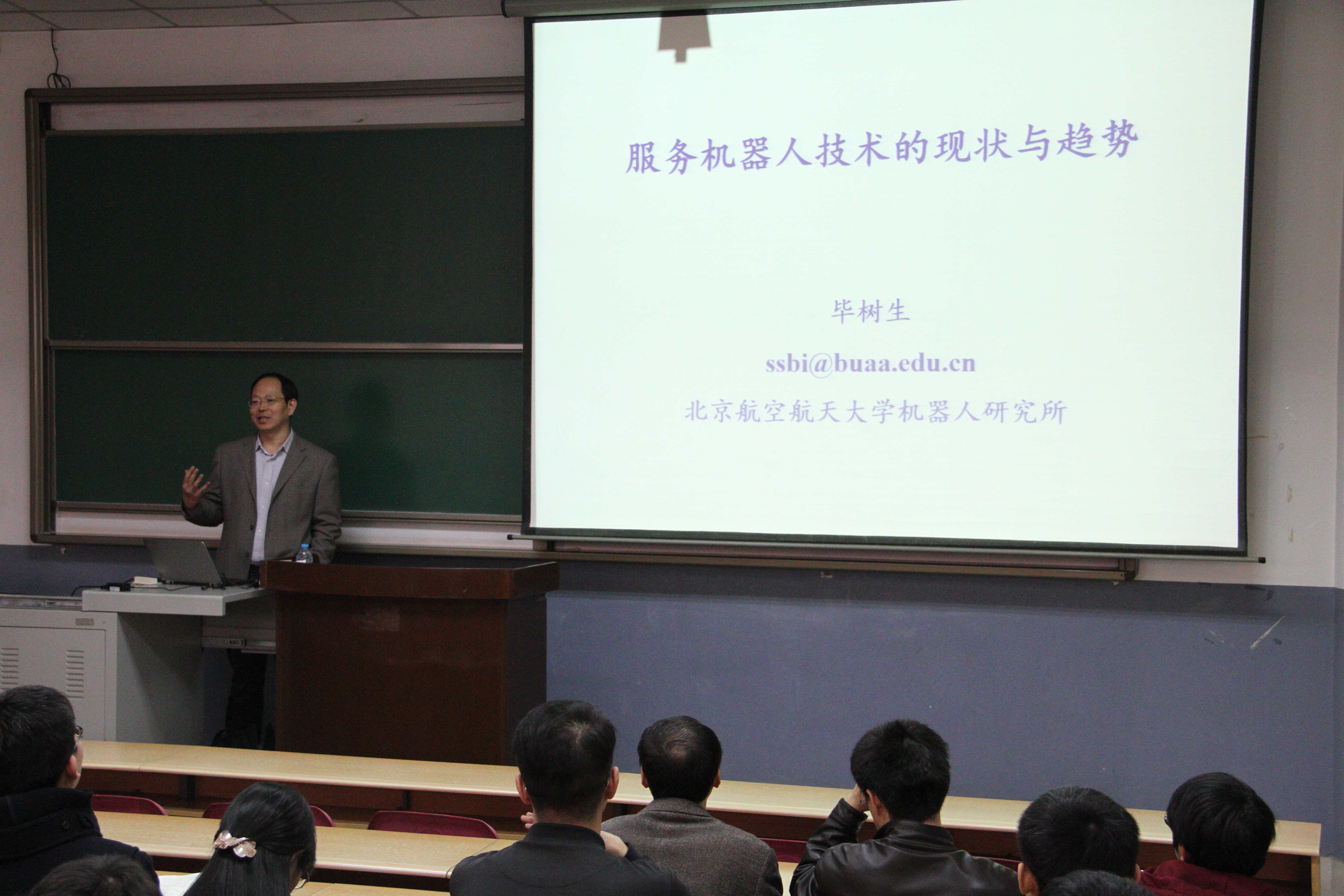 智能制造与机器人技术工程研究中心陈贵敏教授邀请,北京航空航天大学机器人研究所毕树生教授来我校访问交流。5日下午,毕树生教授在阶梯教室J-204做了题为《服务机器人技术的现状与趋势》的学术报告,报告会由木瓜视频