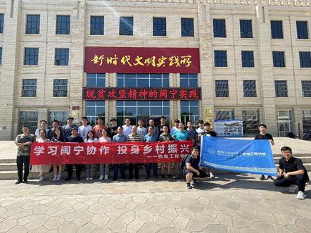 全体师生跟随乡村振兴的步伐来到闽宁镇进行参观学习,了解新形势下的东西部协作,用脚步丈量信仰高地。1997年4月,时任福建省委副书记、福建省对口帮扶宁夏领导小组组长习近平带队来宁夏考察,闽宁两省区负责同志共同协商,实施闽宁对口帮扶,这个地方被命名为“闽宁村”,自此一场跨越2000多公里、历时20年的闽宁协作由此展开。