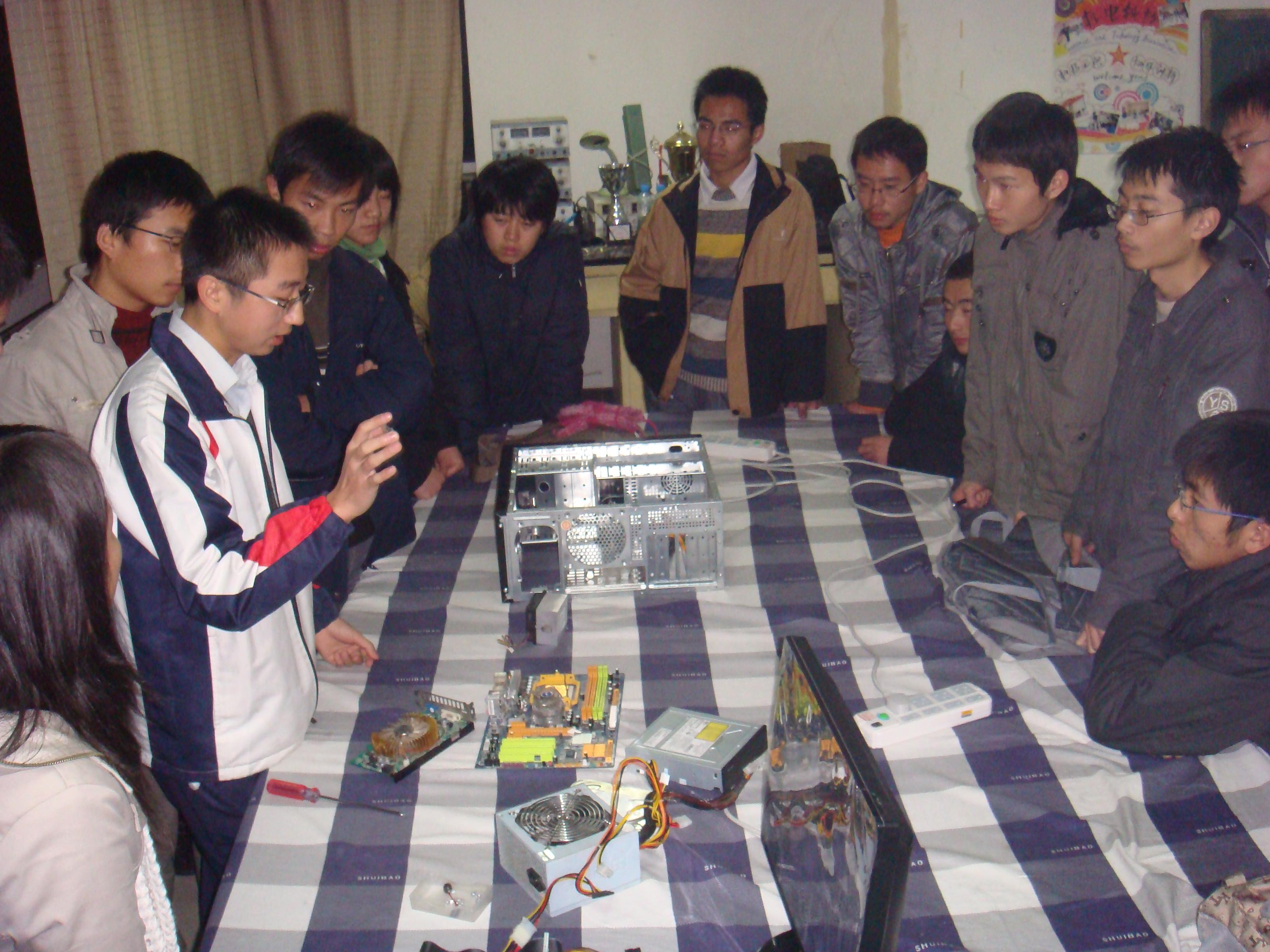 此次培训面向我院科协内部成员,由各部部长和技术部骨干负责。课程为电子制作及科技前沿。电子制作旨在为同学们之后的电子制作之路打下基础,它以元件基础知识、工具使用、焊接技巧为主要内容,每节课为同学们提供动手制作的平台仍然是E-maker培训的亮点;科技前沿主要介绍电脑装机的基础知识和Movie Maker、photo shop等软件,以生动的现场演示丰富知识、开阔眼界。