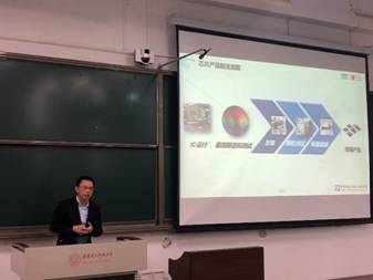 国内高端内存储器封装测试企业沛顿科技总经理的廖玠诚以“我的芯路历程”为主题讲述他的工作经验和发展历程。廖玠诚先从全世界的芯片行业讲到中国的芯片行业,总结了中国芯片行业发展空间的广阔性和重要性,从他最开始想创立这样一家科技公司的原因开始,通过对行业环境的分析以及面对困难的战略调整和想法转变,和同学们分享创业的时光。