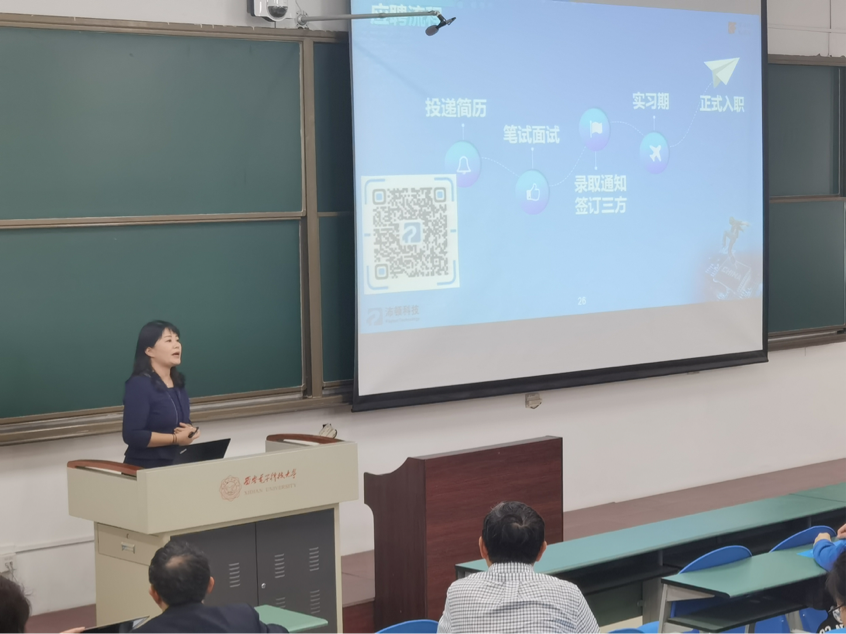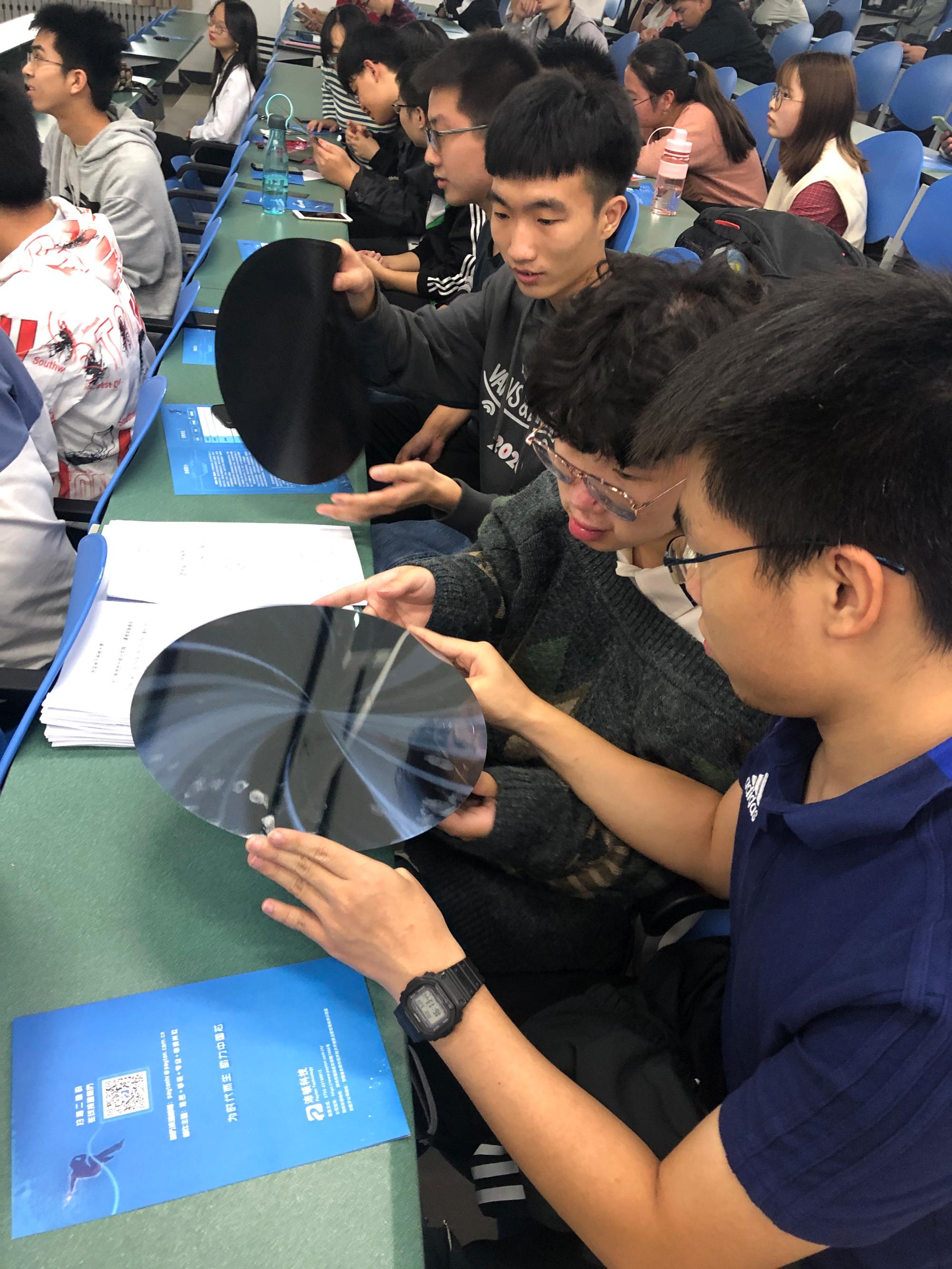 沛顿科技封装研发部负责人张力为同学们展示沛顿科技公司的关键技术和新技术,还向同学们介绍了储存芯片的分配和应用、分装设计和生产流程、相关技术未来的发展方向。在宣讲的同时,张力主动热情地向同学们提问互动,同学们积极响应,发表自己的理解和看法,会后留下与专家咨询有关专业和公司的相关问题,现场气氛和谐融洽。