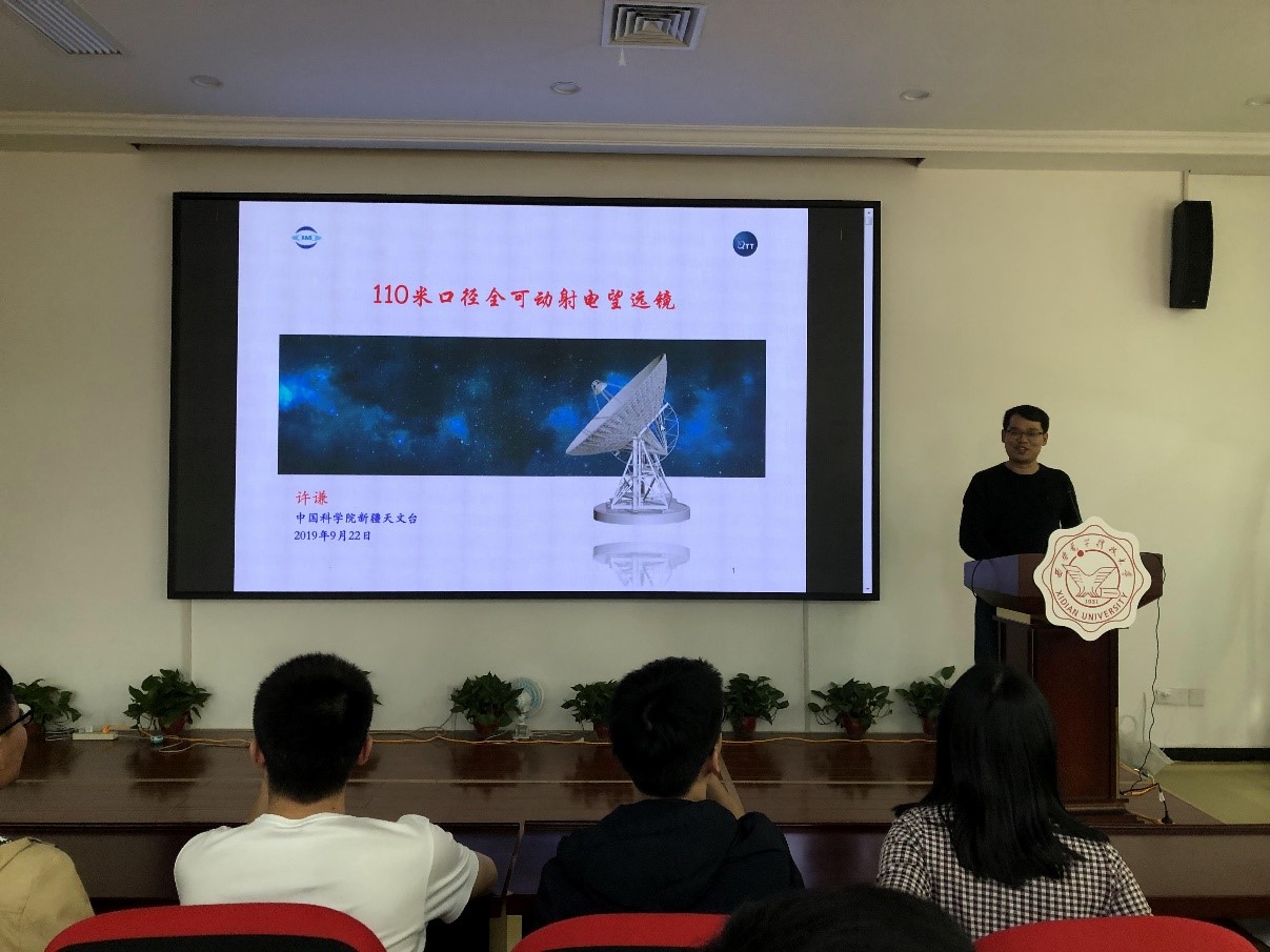 (通讯员:侯书丹、严粤飞)9月22日,新疆天文台研究员许谦应木瓜视频副院长王从思教授邀请,为机电院师生作“新疆110米口径全可动射电望远镜”报告会,本场报告会在北校区主楼III区“菲声493”学术报告厅举行。